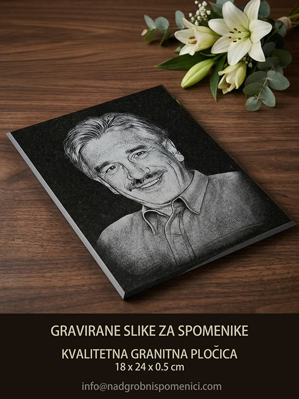 U ponudi imamo kvalitetne slike gravirane na crnim granitnim pločicama. Smatramo da su ove slike za spomenike među kvalitetnijim u regionu, a jednostavno ih je montirati i na već postojećim spomenicima.